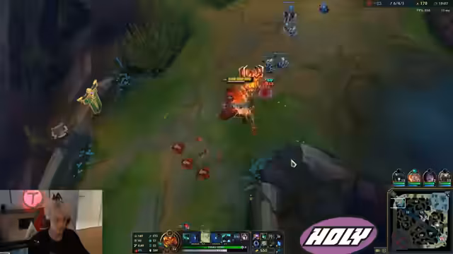 03:12:37Der Streamer kämpft in der Top-Lane gegen Warwick und äußert Frustration über dessen hohe Überlebensfähigkeit und Movement Speed. Er stellt fest, dass Warwick ihn trotz geringer Lebenspunkte immer wieder überlebt und sich schnell erholt. Die Situation wird als Desaster beschrieben, da Warwick durch frühe Kills sehr stark wird und der Streamer mit seinem Champion Aatrox nicht mithalten kann, im Gegensatz zu früheren Spielen mit Sion. Er beklagt, dass das Spiel durch Warwicks Snowball unspielbar wird und er für die nächsten 30 Minuten leiden muss, ohne aktiv etwas bewirken zu können. Es wird auch die mangelnde Reaktion des Teams auf Warwicks aggressives Spiel kritisiert.