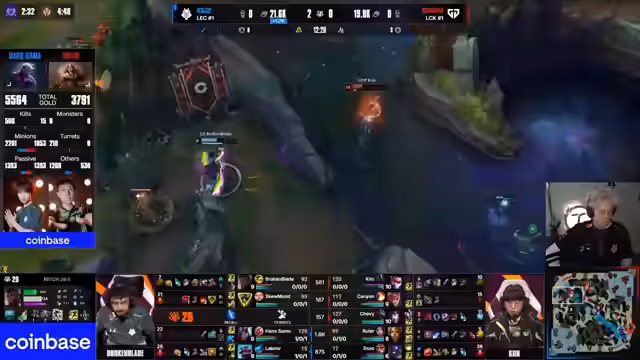 04:17:37Die anfängliche Map-Dominanz von G2 wird durch kluge Entscheidungen untermauert, wie die Eroberung der zweiten Krabbe durch Caps. Diese Entscheidung wird als risikoreich, aber letztlich erfolgreich bewertet. Gen.G. reagiert auf den Druck mit fragilen und koordinativ schwachen Plays, was zu unnötigen Deaths führt. Der Jungle von Gen.G. ist deutlich unterlegen, was es G2 ermöglicht, verschiedene Map-Regionen zu kontrollieren und Ressourcen sicher zu nehmen.