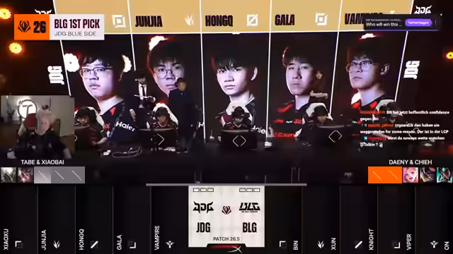 07:35:24JDG wird als Favorit für das Finale angesehen, da sie als bestes Chinas gelten. Die Rolle von Taba als Coach wird als entscheidend für den Erfolg von JDG gelobt. Taba wird als der 'chinesische Coaching-Goat' bezeichnet, der den Erfolg vieler Top-Teams in China beeinflusst hat. Es wird angemerkt, dass er innerhalb kurzer Zeit jedes Top-Team in Top 2 oder Top 1 geführt hat. Sein Abgang bei BLG wird als Verlust für das Team gesehen, während JDG unter seiner Führung weiter wachsen und die LPL dominieren wird.