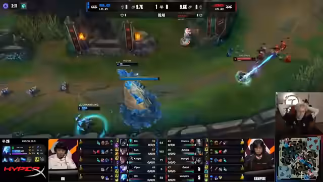 07:44:22Die Kommentatoren heben die spielerischen Fähigkeiten von On von JDG hervor, der durch Dashing und Positionierung seine Gegner besiegt. Sein Anivia-Spiel wird als beeindruckend beschrieben, und er erhält den Titel 'Goat'. Gleichzeitig wird die Fehlentscheidung von Knight von JDG kritisiert, der zu aggressiv spielt und im 1-gegen-1 an Vampire verliert. Es wird diskutiert, warum Senna und andere Picks keine Wirkung zeigen und wie die Itemsituation, wie Hex-Optics für Senna, das Spiel beeinflusst.