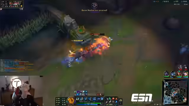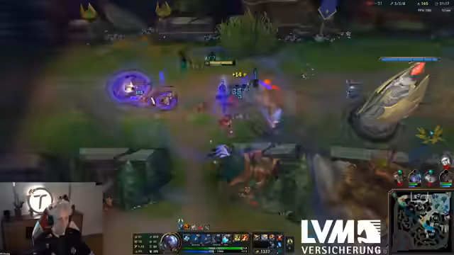 02:17:09Das Spiel befindet sich in einer schwierigen Phase, in der der gegnerische Jungler Master Yi sehr dominant spielt und die ganze Karte kontrolliert. Das eigene Team sieht sich massivem Druck ausgesetzt, insbesondere auf der Top-Lane. Trotzdem gibt es einen Hauch Hoffnung. Der Streamer identifiziert eine mögliche Schwachstelle: Wenn das Team es schafft, den gegnerischen Master Yi zu isolieren und zu töten, könnten sie das Spiel mit einem Teamfight um den Drachen oder Baron Nashor noch drehen und sich so aus der prekären Situation kämpfen.