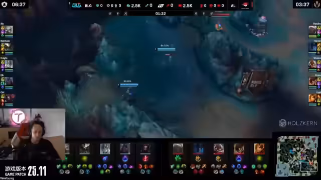 04:19:22BLG entscheidet sich, den Baron Nashor anzugehen, während AL den Elch in der Mitte kontrolliert. Der Streamer kritisiert die Item-Wahl von AL, insbesondere von Shanks, und stellt die Wirksamkeit ihrer Builds in Frage. Währenddessen baut BLG weiter Druck auf, nutzt die Abwesenheit von AL auf der Map und sichert sich den Baron Nashor, was die Goldvorteile weiter vergrößert.