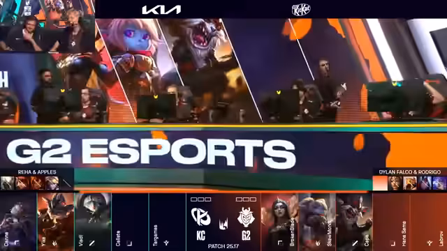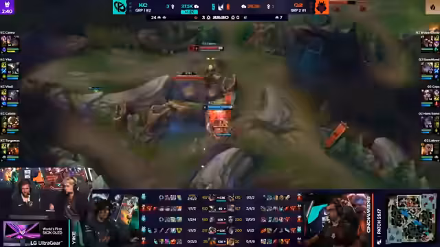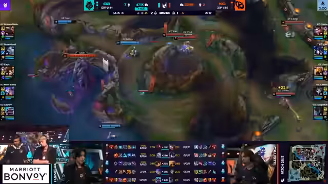 02:19:44Kaliste wird für einen Fehler bestraft, was G2 einen Vorteil verschafft. G2 nimmt drei Türme und zwei Kills, was ihnen einen Goldvorteil verschafft. K-Corp versucht, den Fehler zu bestrafen, aber Labrovs Teleport ist ungünstig. Kaliste wird für seine Gier bestraft. G2 sichert sich den Drake und kontrolliert das Spiel. Victor verursacht hohen Schaden, was seinen Build rechtfertigt. G2 sichert sich Drake, Veit und Baron, was fast die Vorentscheidung sein muss. G2 spielt langsam und kontrolliert, während Vladi flankiert. Lavrov hält seine Zauber zurück und vertraut darauf, dass G2 Front-to-Back gewinnt. G2 gewinnt einen Teamkampf und schaltet 10-Meter-Stacks für Cups frei. G2 verwandelt einen reaktiven Draft in einen proaktiven, indem sie Zauber baiten und Drachen aktiv bekämpfen. K-Corp verliert das Spiel, weil sie in der Midlane zu gierig nach einem Kill sind. G2 erzielt einen risikofreien Playstyle und sichert sich drei Inhibitoren. Kaliste hat beeindruckenden Farm, aber das Seri-Spezial ist viel Farm und wenig Einfluss. G2 belagert die Basis von K-Corp, und Viktor verursacht hohen Schaden. G2 erzielt ein Ace und sichert sich den Nexus, was ihnen den Sieg beschert.