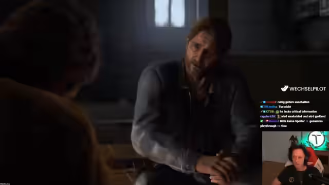 04:14:18Joel und Ellie halten sich in einem abgeschlossenen Quartier auf, das vier Jahre nach dem Ausbruch aufrechterhalten wird. Der Streamer erkundet die Umgebung, findet Vorräte und interagiert mit den Charakteren, insbesondere mit Ellie und dem neuen Charakter Jesse. Er stellt fest, dass Ellie eine schwierige Entscheidung treffen muss und Joel alles tut, um sie zu schützen.