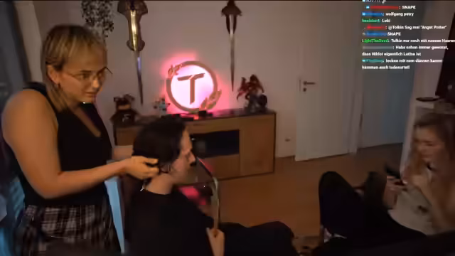 02:38:41Die Atmosphäre des Streams wird durch Geräusche des Friseurhandwerks geprägt, die ASMR-artig wirken. Der Streamer und sein Gast interagieren intensiv mit dem Chat, der Vorschläge macht und aufgerufen wird, in einem Arena-Lobby-Spiel mitzumachen. Gleichzeitig wird die technische Situation mit dem Mikrofon und der Kamera angepasst, um eine optimale Sound- und Bildqualität für das Zuschauererlebnis zu gewährleisten, was die Aufregung und das Engagement beider Seiten unterstreicht.