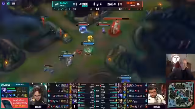 00:01:24Der Streamer berichtet vom Start des Spiels zwischen Navi und Shift. Er beschreibt den Spielverlauf und erwähnt, dass Navi ein weiteres Objektiv auf Schraub Raj schafft und Shift einen Flash investiert. Der Streamer kritisiert seine Verspätung und ärgert sich, dass er fast das LEC-Spiel verpasst hätte. Er äußert sich auch zu seiner疾病 und erwähnt, dass ihm trotz Krankheit bereits besser geht.