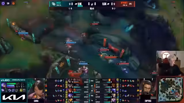 05:40:30Nach Ende des Spiels wird das abschließende Ergebnis und die Auswirkungen auf die Playoff-Platzierungen der Teams analysiert. KC gelingt ein wichtiger Sieg, um ihre Playoff-Position zu sichern. Fnatic muss trotz der Niederlage weiter um eine Playoff-Teilnahme kämpfen. Die Kommentatoren bewerten die Leistung der Teams im gesamten Spiel und ziehen positive sowie negative Aspekte hervor. Es wird auch auf die anstehenden Spiele der Teams in der regulären Saison eingegangen, insbesondere auf die Roadtrip nach Madrid in der nächsten Woche.