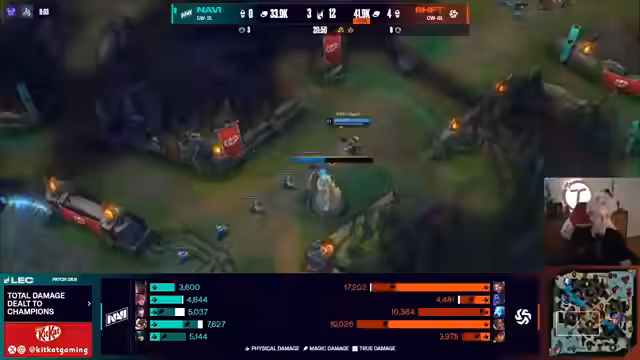 02:10:23Navi zeigt konstantes Aufpoppen und gewinnt jedes Matchup. Der Chat bewundert Rileks beeindruckende Rise und Elieber, aber kritisiert Shifters' schwache Rolle. Navi plant strategisch den Top-Turm zu belagern, während Shifter gegen KC und NaVi Games geholt haben, trotz 0-7 Stand. Die Ente (Duck) als Champion wird als NPC beschrieben, der gegen laufende Goalsäcke spielt.