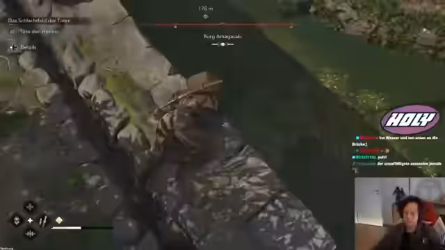 01:31:25Der Streamer macht sich auf den Weg zum Schlachtfeld der Toten, um den Henker zu töten, der für den Tod seines Vaters verantwortlich ist. Der Henker befindet sich in Itsumizetsu, westlich von Ame Gakasi und in Nanatsa Umo. Der Streamer stellt fest, dass das empfohlene Level für diese Quest 35 ist, während er selbst erst Level 5 ist. Trotzdem beschließt er, die Quest anzunehmen. Es wird beschlossen, zunächst die Umgebung zu erkunden und Aussichtspunkte zu synchronisieren. Der Streamer spricht über die Tolkien-Tage in Geldern und gibt Tipps für Besucher. Es wird ein Leap of Faith ins Wasser gemacht. Der Streamer erwähnt, dass er ein großer Fan von Tolkien ist und seinen Vornamen daher gewählt hat. Es wird die Landschaft bewundert und über den Reisanbau diskutiert. Der Streamer schickt seine Speer aus, um Informationen zu sammeln. Es wird eine Quest angenommen, bei der ein Hund gestreichelt werden muss. Der Streamer wird von Gegnern angegriffen, die er bereits zuvor im Tempel getötet hatte. Es wird beschlossen, die Gegner zu ignorieren und stattdessen die Quest mit dem Hund zu verfolgen.