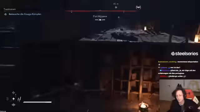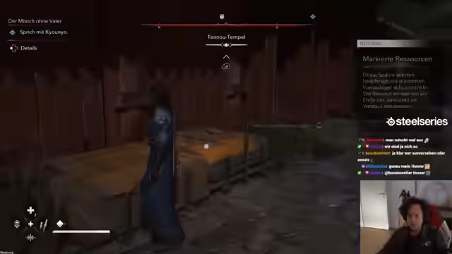 02:12:24Ein neues Krieger-Katana der Kühnheit wird gefunden, das zwar mehr DPS bietet, aber weniger Haltungsschaden und Fähigkeitsschaden verursacht. Es wird festgestellt, dass es länger ist und besser zum Aussehen des Charakters passt. Es wird die Frage aufgeworfen, ob man lieber Samurai, Ritter oder Pirat wäre, wobei Samurai oder Ritter als besser als Pirat angesehen werden, da sie in vielerlei Hinsicht nur zeremonielle Bedeutungen haben. Ein Aussichtspunkt wird synchronisiert und es wird festgestellt, dass das Spiel 'fucking cool' ist. Es wird über das Gravieren von Gegenständen diskutiert, wobei der Streamer die Mechanik noch nicht verstanden hat. Es wird das Ziel formuliert, zum Henker zu gelangen. Es wird festgestellt, dass nach der Synchronisierung alle Gegner respawnt sind. Es wird das Schilfrohr-Feature ausprobiert, um ewig atmen zu können. Der Militärbezirk von Osaka wird erreicht, obwohl dies nicht beabsichtigt war. Es wird festgestellt, dass das Töten von Feinden XP bringt.