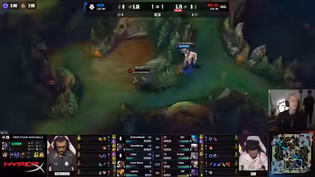 05:48:32Das Turnier First Stand 2026 wird als das beste in letzter Zeit gelobt, auch aufgrund des verbesserten Formates mit Bo5 in allen Spielen und der besseren Arena mit 150 Zuschauern. Es wird eine größere Arena und ein Round-Robin-Format für die Zukunft gefordert. Das Turnier hat gezeigt, dass China nicht zu schlagen ist, aber auch, dass Europa wieder mithalten kann. MSI wird als hochgehypert erwartet, da die Rivalität zwischen den Regionen wieder erwacht und nicht länger von Korea dominiert wird.