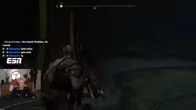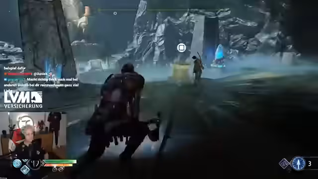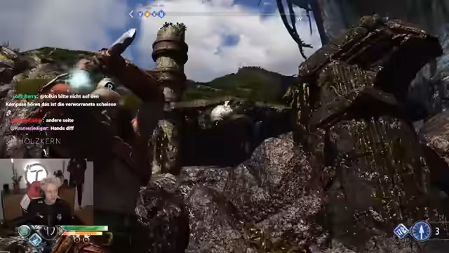09:40:57Nach dem Durchqueren verschiedener Rätsel und Kletterpartien erreichen die Charaktere das Herz des Berges. Dort erwartet sie ein starker Bossgegner. Der Streamer stellt fest, dass sein Companion Atreus durch seine Skills und Upgrades extrem überpowered ist und den Großteil der Schäden verursacht, während er selbst wenig effektiv agiert. Der Kampf endet mit dem Sieg, doch der Fortschritt ist blockiert.