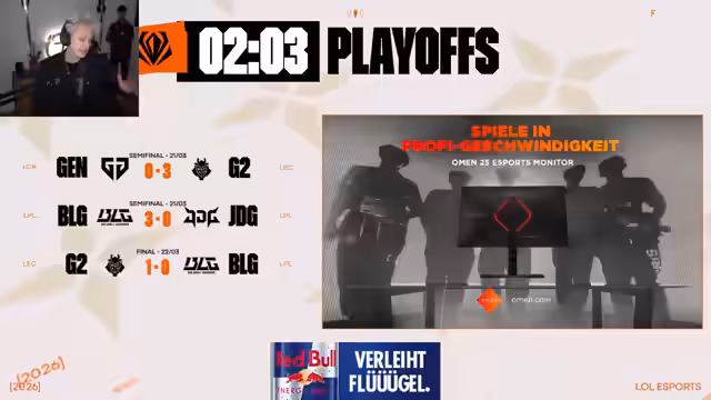 05:13:44Das Finale wird als eines der würdigsten der letzten Jahre bezeichnet, mit nur einem deutlichen Stomp in Game 3. BLG und insbesondere Bin werden als Hauptursache für den 3:1-Sieg gelobt. Trotz der Niederlage wird Europa als Region als rehabilitiert und stark angesehen. Man kann China nun als ernsthaften Gegner betrachten, nachdem vorherige Turniere von Korea dominiert wurden. Der zweite Platz wird als riesiger Erfolg gewertet, der Hoffnung für zukünftige internationale Turniere wie MSI und Worlds schafft.