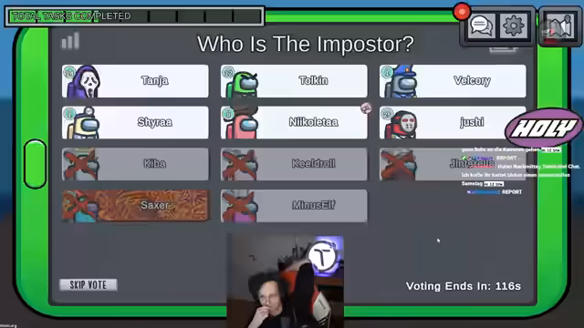 12:04:15Tanja versucht, andere Spieler zu retten, während sie gleichzeitig die Bewegungen der Verdächtigen beobachtet. Sie überlegt, wen sie beschützen soll und wer möglicherweise der Impostor ist. Die Spieler diskutieren über die Taktiken der Impostoren und wie sie versuchen, Vertrauen aufzubauen, um ihre Taten zu verschleiern. Kiba wird verdächtigt, weil er sich verdächtig verhält. Die Spieler sind sich uneins, wem sie vertrauen können und wen sie wählen sollen. Nicoletta wird als ehrliche Haut bezeichnet, was die Entscheidung, wen man wählen soll, noch schwieriger macht. Tanja wird für ihre Fähigkeit gelobt, andere Spieler zu durchschauen und die Impostoren zu entlarven. Die Spieler diskutieren über die Mechaniken des Shapeshifters und wie er die Spieler verwirren kann. Am Ende wird ein Spieler rausgevotet, obwohl er beteuert, unschuldig zu sein. Die Spieler sind sich einig, dass sie in der nächsten Runde vorsichtiger sein müssen, um nicht erneut einem Impostor zum Opfer zu fallen.