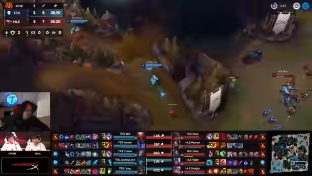 12:27:46Top E-Sports wird für eine riskante Jagd auf den Raptoren-Camp von Kanavi kritisiert, die zu früh erfolgt und in einen Falle führt. Gleichzeitig haben die Koreaner einen großen Goldvorteil durch Kalista. Der Fokus liegt auf der strategischen Bedeutung des Drachen und dem fehlenden Flash von Arthox. Im folgenden Teamfight nutzt Zekka mit Akali seine 'Perfect Execution', indem er mehrere Gegner isoliert und besiegt, was den Sieg für Hanwha Life cementiert.