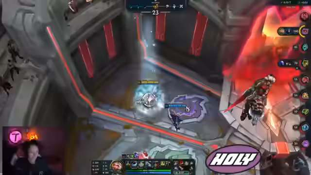 07:45:11Ein weitläufiges Gespräch über die eigene Karriere mit Stationen bei Mad Lions, Schalke und Team Liquid, wobei die Finalteilnahme bei Schalke und die aktuelle dritte Saison bei Liquid hervorgehoben werden. Der Fokus wechselt zu Gameplay-Analysen; der Streamer diskutiert Champion-Builds wie Melee Corki und die Wahl zwischen Gegenständen wie Duskblade und Everfrost. Er kritisiert seine Item-Rolls als unglücklich und stellt Fehler in der Spielmechanik fest, darunter eine gescheiterte Ultimation und eine unvorteilhafte Positionierung, die zum Tod führt.