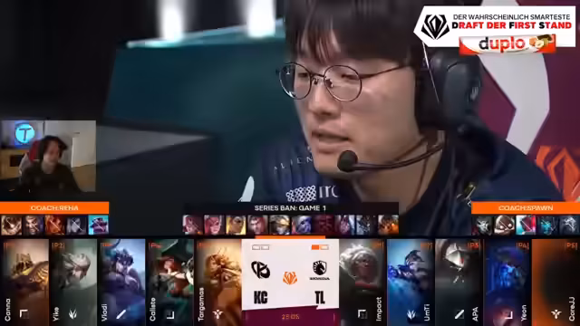 10:13:15Das letzte Game beginnt mit der Analyse der finalen Drafts. Team Liquid wählt eine aggressive Early-Game-Orientierung mit Thalia und Nocturne, dieBot-Lane drücken wollen. K-Cope setzt auf eine defensive und skalierendere Bot-Lane mit Kalista und Yuumi. Die Kommentare bewerten das Matchup als kritischen Punkt für den Spielverlauf. Es wird erklärt, wie Yuumi Kalista durch Heilung und Mobility schützt und ihr das Überleben in der Lane ermöglicht. Der Start des Spiels wird mit Spannung verfolgt, da der Early-Game-Druck von Liquid den entscheidenden Faktor sein könnte.