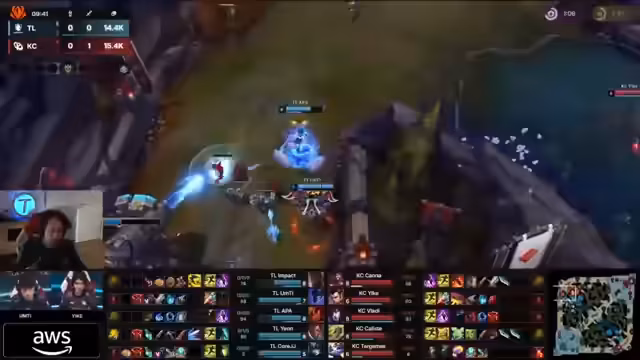 09:27:12Nach den ersten Tötungen in der Botlane versucht Kana auf Toplane die Initiative zu ergreifen. Mit einem cleveren Hookshot setup für Camille versucht er, Impact anzugreifen. Der Plan scheitert jedoch, Impact kann entkommen und kontert, indem Kana gezwungen wird, zurückzukehren. Unterdessen nutzt Liquid die Disorganization von KCOP aus, um weitere Vorteile im Map-Controlling zu erlangen.