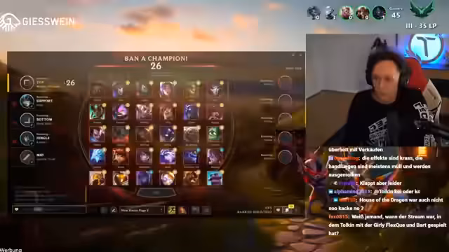 05:44:56Der Streamer kommentiert den anstehenden Turnierkalender, insbesondere die 'El-Klassico'-Begegnung zwischen G2 und Fnatic, deren Sieger gegen die Gewinner von KCOP und Movistar antreten wird. Das gesamte Wochenende ist voller Action mit Spielen am 24., 25. und 26. Eine feste Cast-Planung vermeidet er, um Flexibilität zu behalten, da er manchmal spontane Spiele überspringen muss. Regelmäßig castet er alle europäischen Spiele und die koreanischen Spiele, mit Ausnahme der 8-Uhr-Spiele in Korea. Für die LPL wählt er nur die "Banger"-Games, während die NLC nahezu komplett im Fokus steht.