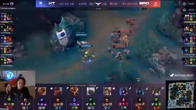 02:08:28Die Brooooo-Teams kämpfen sich in einem turbulenten Game 2 zurück. Nach einer Reihe von Teamfights und erlittenen Verlusten schaffen sie es, einen Kill auf einen Schlüsselspieler von KT zu erzielen und das Spiel mit einem klaren Sieg zu beenden. Dies gleicht die Serie auf 1-1 aus und zwingt ein entscheidendes drittes Spiel. Der Streamer feiert diesen Comeback-Sieg und hebt die hohe Kill-Zahl der Bros hervor, die mit 20 Kills gegen 3 für KT deutlich dominieren.