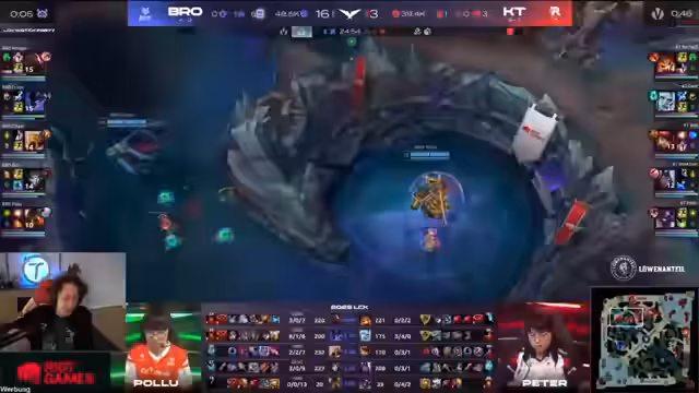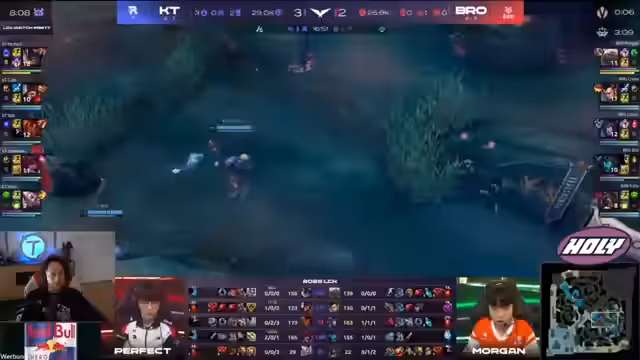03:17:02In den letzten Minuten des Spiels gelingt es KT, das Nashor wieder zu zerstören. Lord Morgan von KT stirbt jedoch im Zuge des Angriffs, was zu einem nachhaltigen Vorteil für BROOOOO führt. KT kann das Spiel nicht mehr zurückholen. BROOOOO gewinnt das Spiel mit einem klaren Ergebnis und feiert ihren ersten großen Sieg, sie erreichen die Playoffs zum ersten Mal in ihrer Geschichte.
