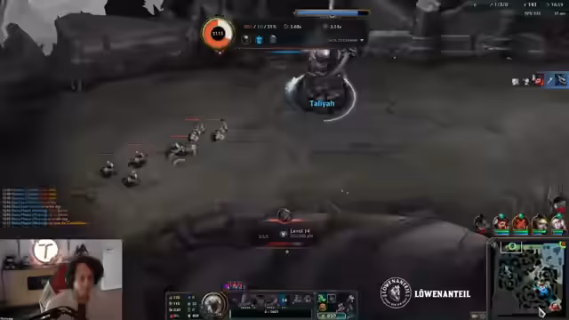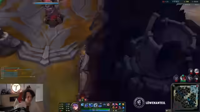 04:14:18Das erste Camille-Spiel des Tages war ein wilder Kampf. Trotz eines schwierigen Starts und ständigen Teamkämpfen konnte das Spiel durch Split-Pushing gewonnen werden. Es wurde betont, dass das Team mental stabil geblieben ist. Obwohl das Team nicht nur wegen Splitpush gewonnen hat, war es aus der Sicht des Streamers das Wichtigste. Das Team hat einfach gefistfightet. Alle haben mitgefistfightet. Es wurde permanent gedived, Turrets sind hier und da gedroppt worden. Es gab 94 Kills in 33 Minuten, was das Spiel sehr blutig machte. Der Vorteil, Minions besser farmen zu können als Akali, wurde genutzt, um reich zu werden und viele Items zu erhalten. Das Spiel wurde über Splitpush gewonnen, da der Champion so gespielt werden will.