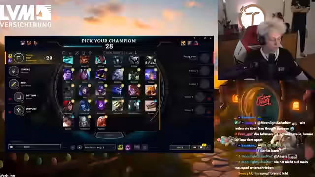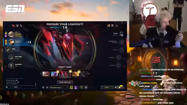 00:00:29Der Stream startet mit Begrüßungen und kleineren Gesprächen. Streamer Tolkien erklärt den Kontext der Relegation - es geht um den Klassenerhalt in Division 2. Die Stimmung ist angespannt, aber motiviert. Tolkien erwähnt, dass es die letzte Chance ist, die Klasse zu halten. Es gibt Diskussionen über die Spieltaktik gegen den Darius-One-Trick des Gegners.