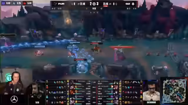 06:22:37In der späten Phase des Spiels haben die Brasilianer die Oberhand. Sie greifen den Nashor an und erzwingen den Fight. Die europäische Seite reagiert unkoordiniert und verliert mehrere Teammitglieder. Trotz eines glücklichen Todes von Annie, der den Nashor-Contest rettet, bleibt die Situation kritisch. Die Brasilianer kontrollieren das Spiel und haben alle Optionen, um den Sieg sicherzustellen.