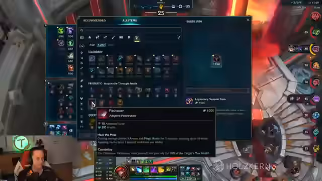 00:16:57Das Gameplay in der Series-Arena dominiert den Stream. Der Streamer analysiert seine Builds, diskutiert Items wie Infinity Edge und Galeforce und beschäftigt sich mit den Stärken und Schwächen der ausgewählten Champions wie Zyra und Jinx. Es kommt zu intensiven Kämpfen und strategischen Entscheidungen, die manchmal zu einem frühen Ausscheiden in der Runde führen. Die Kommentare des Chats werden oft in die Analyse einbezogen.