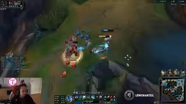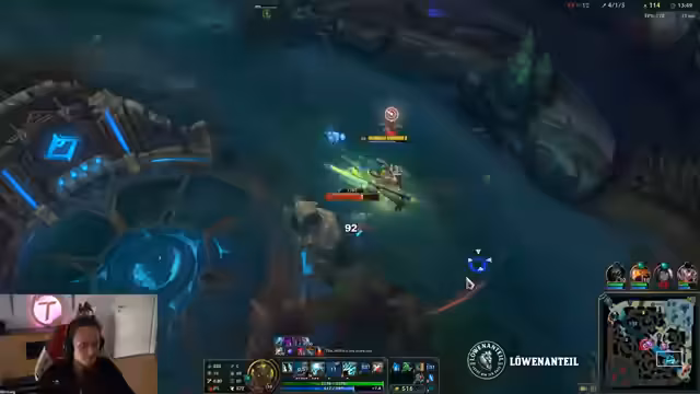 08:46:13Die Gameplay-Szene konzentriert sich auf komplexe Jungle-Kontrollen und Team-Engagements. Der Streamer priorisiert das Farmen der Camps des Gegners und den Diebstahl des Mark, um Angriffsbereiche zu erweitern. Bei einem Teamfight nutzt er sein Ultimativum effektiv, um gegnerische Spieler wie Olaf einzuschließen, auch wenn es ihm später Leid tut, da er eine Gold-Bounty auf sich hatte. Seine strategische Entscheidung, nicht sofort zu ulten, wird hinterfragt, da er den optimalen Zeitpunkt falsch einschätzte. Seine Items ermöglichen es ihm, als tankiger AD-Carry zu agieren und Schaden zu verursachen, ohne sofort ausgeschaltet zu werden.