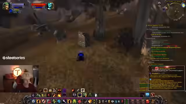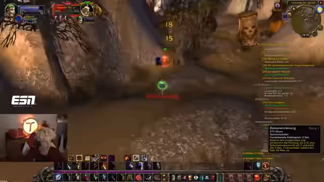 09:10:43Der Spieler kämpft mit seinem Team im Aschenthal und versucht, die Suche nach der Sukubus abzuschließen. Dabei kommt es zu intensiven Kämpfen mit Twilight-Jüngern und anderen Gegnern. Der Fokus liegt auf der Koordination mit dem Begleiter Wospi (Level 32) und dem strategischen Einsatz von Fähigkeiten wie Schattenblitz und Fluch der Pein. Gleichzeitig werden neue Gebiete erkundet und Questziele wie das Herzholz und der leuchtende See-Edelstein gesucht, wobei die niedrige Drop-Rate der Items Frustration verursacht.