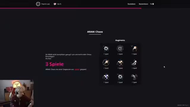 00:30:46Ausführliche Betrachtung der persönlichen LoL-Jahresstatistiken: Mit 58% Winrate in 1.100 Spielen, 1300 Gesamtgames und Spezialisierung auf Tank-Topliner wie Mundo oder Urgot. Bemerkenswert sind 406 'On My Way'-Pings, 9 Quadrakills sowie humorvolle Reflexion über 30% Todeszeit in einem Einzelmatch. Tolkin zeigt sich zufrieden mit seinen Arena-Erfolgen (72 erste Plätze).