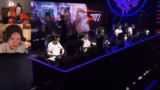 07:20:46Moderator betont sein Entsetzen über die schlechten Leistungen des westlichen Esports im Vergleich zu Asien. Der Streamer reagiert auf die Kamera eines Zuschauers mit einem Baby und findet es toll, dass eine Generation von Eltern ihre Säuglinge zu E-Sports-Veranstaltungen mitnimmt. Ein persönlicher, humorvoller Vorfall, bei dem der Streamer sich selbst ins Auge schlug, wird geschildert. Die Leidenschaft und Präsenz der Zuschauer, trotz der frühen Stunde, wird hervorgehoben.