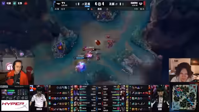 08:46:22Dorans aggressiver Pay führt zu einem Double-Kill für T1. Dieser Moment gibt dem Team einen enormen Goldvorteil und zementiert ihre Dominanz in den ersten 20 Minuten des Spiels. Die Kommentatoren sind beeindruckt von Dorans individueller Klasse und heben hervor, dass T1 auf beiden Seiten der Map das bessere Playmaker findet und der Draft perfekt auf Snowballing ausgelegt ist.