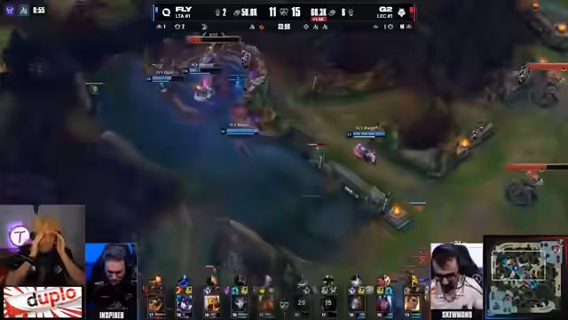 11:08:43Ein großer 5-gegen-5 Teamfight um den zweiten Drake steht im Mittelpunkt. Der Kommentator zählt die Items und Power-Spikes der Spieler durch und stellt fest, dass G2 eine zahlenmäßige Überlegenheit von 5 zu 4 hatte. G2 konnte den Drake für sich entscheiden, obwohl Lucian von HansHammer noch schwach war. Der Sieg wurde durch cleveres Zählen und einfaches Gameplay erreicht. Dabei litt Top-Lane durch den Rot, aber die gewonnenen Objectives werteten diesen Nachteil auf.