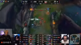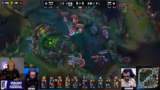 11:12:21Nach einem verlorenen Teamfight gibt der Kommentator eine deutliche Fehleranalyse. Er kritisiert den Champion Zarya, der sich in jedem Fight zurückzieht und kaum Schaden anrichtet, aber Lucian gegenseitig outsourcen lässt. Es wird der starke Einfluss von Soraka als Frontline hervorgehoben, die viel Schaden absorbieren und heilen kann. Der Kommentator lobt jedoch Skirmont, der in einem schwierigen Match-up gegen Trundle einen Kill holte und damit ein Objective sicherte, und betont das gute Spiel von Broken Blade.