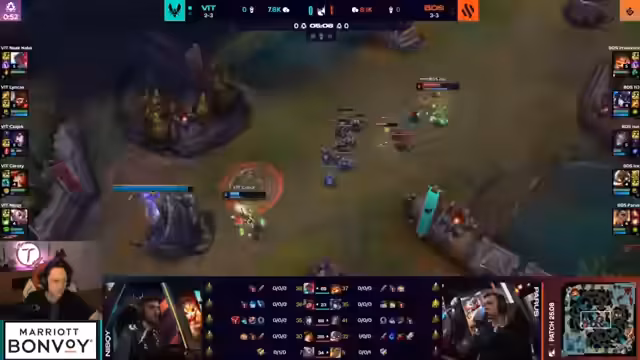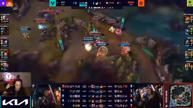 03:11:03Vitality ist in der Lage, trotz anfänglicher Rückstände durch mehrere unkoordinierte Teamfights von BDS zurück ins Spiel zu kommen. Sie nutzen Fehler von BDS, wie einen fehlgeschlagenen Teleport-Engage, um Kills zu erzielen. Dies führt zu einem Tausch im Verhältnis 2-1 für Vitality und sichert ihnen einen Drachen, was den Goldvorteil dreht. Der Kommentator stellt fest, dass BDSS Fehler fatal sind und ihnen in den Kiefer stechen.