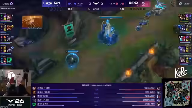 00:00:00Zu Beginn des Streams analysiert der Kommentator die Draft-Phase des Spiels zwischen BRO und DK. Besonders im Fokus steht das Top-Lane-Matchup zwischen Varus und Anivia. Der Kommentator erklärt, warum Varus eine ungewöhnliche, aber potenziell starke Wahl für die Top-Lane sein könnte, insbesondere mit seinem extra AD-Ratio auf dem W. Gleichzeitig wird die Theorie diskutiert, dass Aurora eher in der Mid-Lane als Top-Lane gespielt werden sollte, da dies eine sicherere Option wäre. Kommentator zeigt sich beeindruckt von der strategischen Tiefe der Picks, besonders von Verrus, der hier als unkonventionelle, aber ernstzunehmende Bedrofung auf der Top-Lane agiert.