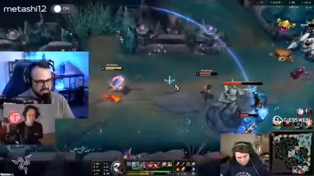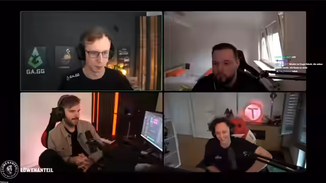 05:41:56Der Stream beginnt mit einer intensiven Quizrunde über League of Legends Wissen. Teilnehmer beantworten Fragen zu Champion-Fähigkeiten, Spielmechaniken und Lore-Themen. Themen umfassen Sennas Rosen, Atakan Opsi, Champion-Transformationen, Skins wie Rusty Blitzcrank, globale Ultimate-Fähigkeiten von Champions wie Draven und Senna, sowie die passive Fähigkeit von Anivia, die sie im Ei für sechs Sekunden unbesiegbar macht. Die Fragen erfordern präzises Spielwissen und werden von den Teilnehmern mit unterschiedlichen Erfolgsraten beantwortet.