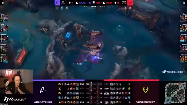 08:39:04Die Lost Rats beginnen mit einem unkonventionellen Zonern-Plan und vertikalem Jungling, was zu einem Lane-Swap führt. Sie führen einen 4-2-Dive in der Botlane aus, inspiriert von Fnatic- und BDS-Playbooks. Dieses Play führt zu einem Tausch von zwei gegen drei Kills für Lost Rats, obwohl Venom Crest aufgrund von besserer Positionierung im Vorteil ist. Kommentare der Zuschauer werden angesprochen und verschiedene Champion-Builds und Item-Pfade diskutiert.