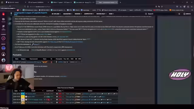02:22:57Der Streamer bespricht T1s beeindruckende Leistung mit einem 2-0-Sieg und neuen Rekorden, darunter Fakers erster Pentakill seit 10 Jahren und Kerias 5000 Assist-Marke. Er äußert sich zu bevorstehenden Matches, insbesondere zur LCK-Dominanz von Chovi und Gen.G., und fragt, ob diese durchbrochen wird. Er erwähnt auch das anstehende Spiel zwischen Nong Shim und Jenji und die Hoffnung auf ein spannendes Match.