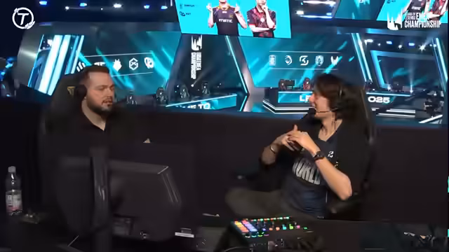 00:41:12Die Diskussion beginnt mit der Erwähnung eines ehemaligen Gastes, der Interesse an Berlin zeigte und sich nach ADC erkundigte. Der Gesprächspartner bedauert dessen Rücktritt und lobt gleichzeitig seinen kompetenten Eindruck als ADC. Es wird ein Vergleich zu Jack Spector plus Drakos gezogen, was als gelungene Kombination empfunden wird. Die Wichtigkeit, sich auf das Spiel zu konzentrieren, wird betont, und es wird vorgeschlagen, EZK mit Jax Vector abzuwechseln. Drakos wird als Tour-Kommentator gelobt, und es wird Traxy aufgefordert, die Vue.Tour zu aktualisieren. Es wird humorvoll angedeutet, dass Traxy bei Nichterfüllung gekündigt werden könnte. Die Funktionsweise der Mikrofone wird erklärt, und es gibt einen kurzen humorvollen Austausch über eine hohe Stimme und das Anbieten von Subs. Abschließend wird die Enttäuschung über das vorzeitige Beenden einer Aktion und die anschließende Wiederaufnahme thematisiert, wobei eine persönliche Anekdote über eine peinliche, aber lustige Erfahrung in einer Arena geteilt wird. Es wird ein Zeichensieg erwähnt, den der Sprecher sehen wollte. Der Abschnitt betont die Dynamik und Kompetenz verschiedener Persönlichkeiten im LEC-Umfeld sowie humorvolle Einlagen und persönliche Erfahrungen.