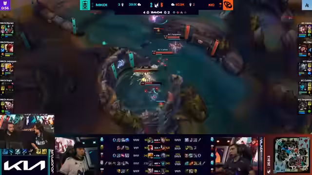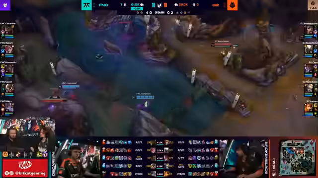 01:28:10Das Spiel entwickelt sich schnell zu einem actionreichen Duell. Kommentatoren beschreiben einen sehr frühen Fight, in dem Oskar durch geschicktes Positionieren und einen gelungenen Teleport-Catch den Turn erzwingt. Es wird die aggressive Vorgehensweise beider Teams hervorgehoben, die zu zahlreichen Todesfällen und ständigen Wechseln in der Führung führt. Insbesondere die gut koordinierten Engages und Flanks von Fnatic werden als entscheidend für das Spieltempo gelobt.