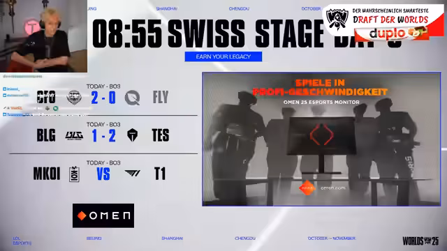 12:21:34Nach der Niederlage in Game 1 wird die gezeigte Mentalität der Spieler von CFO hinterfragt. Einige wirken frustriert, was Sorgen um einen möglichen mentalen Zusammenbruch des Teams aufkommen lässt. Analysten sind jedoch der Meinung, dass FlyQuest das Game hätte gewinnen können, wenn nicht Draft-Fehler gemacht worden werten. Für die Turnierausblick prognostizieren sie, dass CFO wahrscheinlich als das bessere Team weiterkommt, auch wenn einige chinesische Teams wie BLG momentan als schwächer eingestuft werden.