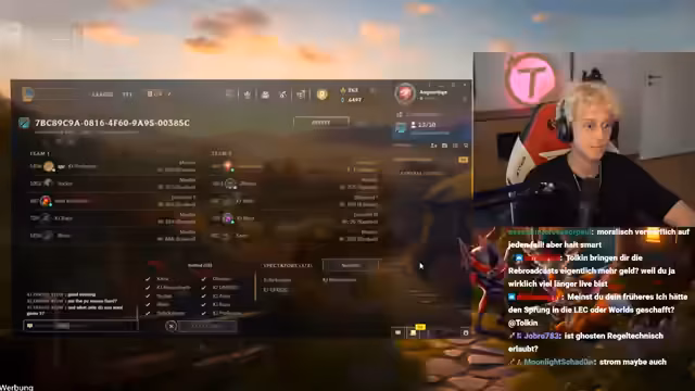 11:29:20Es kommt zu unangekündigten Pausen im Spiel. Eine Pause wird ausgelöst, da ein Verdacht auf einen Laneswap-Bug besteht, bei dem ein Spieler fälschlicherweise Gold oder Erfahrung erhalten wollte. Nach Ermittlung des Schiedsrichtergerichts wird entschieden, dass es sich nicht um einen Bug handelt, sondern um einen Missbrauch der Laneswap-Regeln, sodass das Spiel ohne Wiederholung fortgesetzt wird. Später kommt es zu einer zweiten, längeren Pause, vermutlich weil Spieler auf die Toilette müssen, was den Streamer ungeduldig und sarkastisch macht, da die Spielzeit kaum vorankommt.