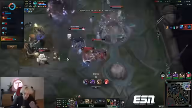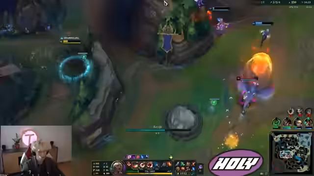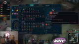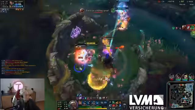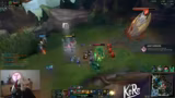 05:43:19Der Streamer drücktie Frustration über eine unspielbare Spielsituation aus. Nachdem er in der Top-Lane gestompt hat, sorgt der gegnerische Jungle, Hecarim, dafür, dass er den Vorteil nicht ausbauen kann. Er fühlt sich arbeitslos auf der Map und weiß nicht, wie er sein erfolgreiches Match-up nutzen kann, da das gesamte Spiel von der gegnerischen Bot-Lane dominiert wird.