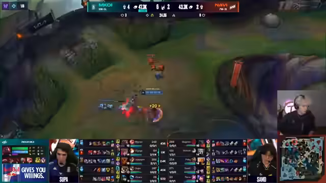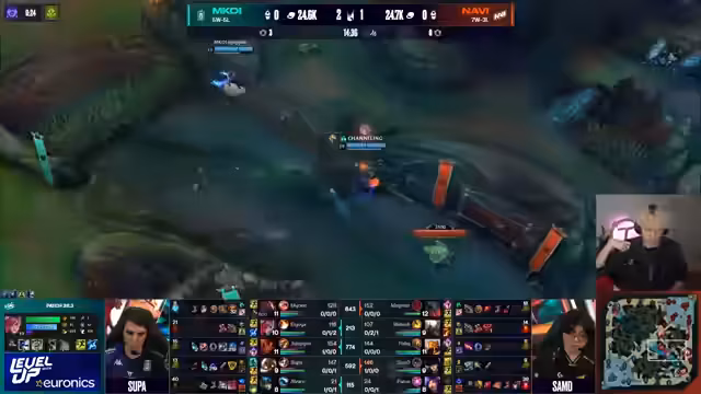 08:16:15In der Mitte des Spiels kämpfen beide Teams um Position und Vorteile. Nemesis kann knapp mit seinem Shield überleben, während Jumanoid von Vitality starken Schaden anrichtet. Die Spielsituation verschärft sich, da Mundo für Sideline-Pushes das Nashor-Spawn abwartet. Mundo wird als immer stärkerer Faktor angesehen, benötigt aber weitere Items wie Titanic Hydra. Seine Effizienz wird auf das Rando-Pick zurückgeführt, das auch im vorherigen Spiel gegen YonKorki erfolgreich war.