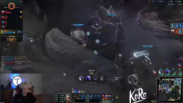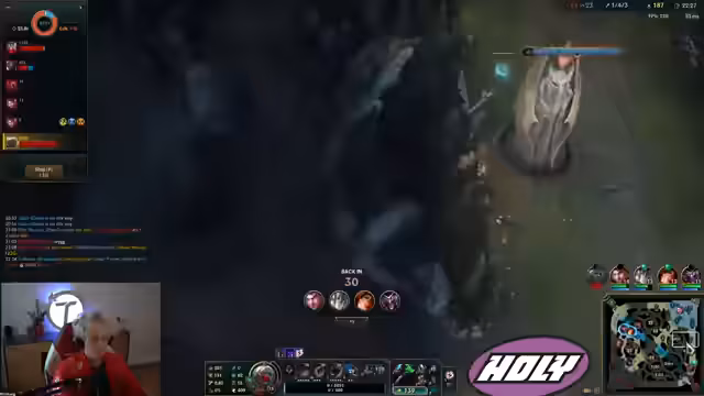 11:37:03Der Streamer verliert zusehends die Map-Kontrol und den Überblick. Er kann wichtige Gegner-Camps nicht mehr sicher markieren, und sein Team unternimmt riskante und unkoordinierte Engagements, die scheitern. Bei einem Versuch, einen wichtigen Kampf um Baron Nashor zu initiieren, wird er getötet. Das Live-Commentary ist geprägt von Verzweiflung und der wiederholten Feststellung, dass seine Lanes verlieren und er sich in einer aussichtslosen Lage befindet, in der er den 'Helden spielen' muss.