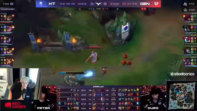 00:01:17Ein Rückblick auf frühere Finalteilnahmen beider Organisationen zeigt, dass KT zuletzt 2018 im Finale der LCK stand und dieses gewann. Gen G hingegen war in den letzten Jahren häufiger vertreten. Der Streamer hebt hervor, dass auf Seiten von KT Spieler wie Kuz und BDD bereits Meistertitel gewonnen haben, während DuckDom, Peter und Perfect noch keine Finalerfahrung haben. Im Gegensatz dazu verfügt Gen G über ein sehr erfahrenes Team mit zahlreichen Titeln. Der Streamer betont, dass es sich um ein wichtiges Spiel handelt. Er analysiert die Draft-Phase und die aktuelle Meta, wobei er die Priorität der Midlane und die verbesserte Mid-Jungle-Synergie von KT hervorhebt. Es wird angemerkt, dass Kenyon im Vergleich zu Kaz derzeit weniger Chancen nutzt. Die Frage ist, ob Gen G nach der Serie gegen T1 wieder zu alter Stärke gefunden hat.