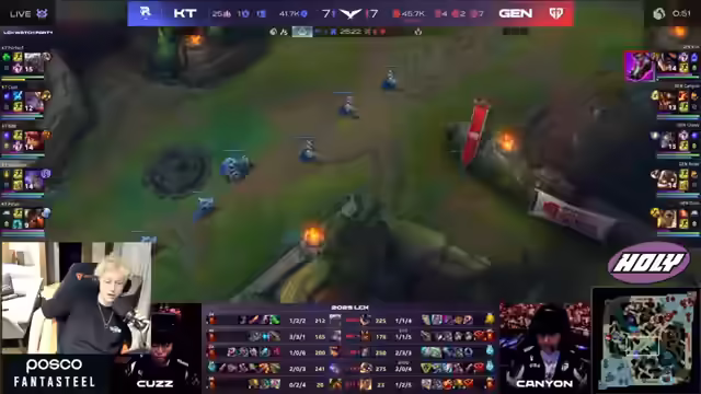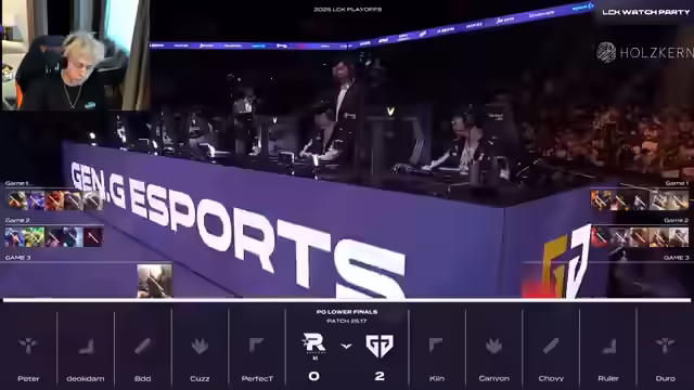 00:00:18Der Streamer beginnt mit der Vorstellung des Lower Bracket Finales zwischen KT und Gen G. Es wird als ein Rematch beschrieben, nachdem KT Gen G bereits einmal überraschend besiegt und damit für Aufruhr gesorgt hat. Gen G hingegen ist ein Dauergast in Finals. Der Streamer betont die Bedeutung dieses Spiels für die KT-Rollster-Fans, da ein Sieg im Best-of-Five-Format einen wichtigen Meilenstein darstellen würde. Er fragt sich, ob KT einen Weg gefunden hat, Gen G erneut zu schlagen, da Gen G in der Vergangenheit oft in internationalen Turnieren der LCK erfolgreich war, aber nun verwundbar erscheint. Ein Sieg von KT würde bedeuten, dass weder T1 noch Gen G im Finale stehen, was eine bemerkenswerte Wendung wäre. Der Fokus liegt auf der Mid-Jungle-Synergie von KT, die aktuell stärker eingeschätzt wird als die von Gen G. Abschließend wird die Bedeutung der aktuellen Form beider Teams hervorgehoben, wobei KT als unberechenbar gilt und Gen G nach der Niederlage gegen KT eine neue Schwäche gezeigt hat.